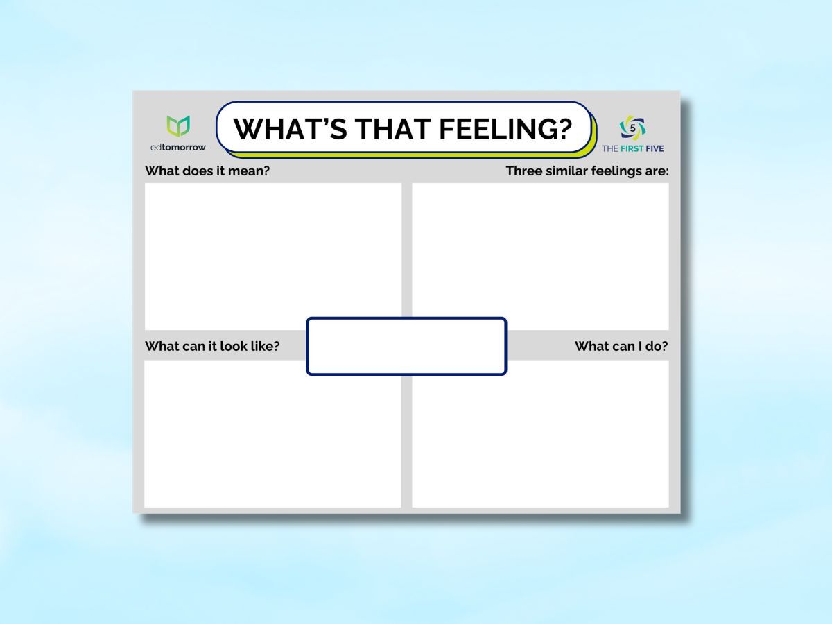 Start by sharing the word and what it means. Write the word in large letters inside of the rectangle in the middle. In the top left quadrant, share what the word means. In the bottom left quadrant, have students offer ideas of what this emotion may look like if someone is experiencing it. In this section, you can write the words, draw a picture, or paste an image (emojis work great). On the right side of the organizer, share or brainstorm three similar words that can go with that feeling. Finally, discuss strategies to manage this emotion in the bottom right quadrant. Using student input for these sections is always great, but feel free to share your thoughts and experiences!